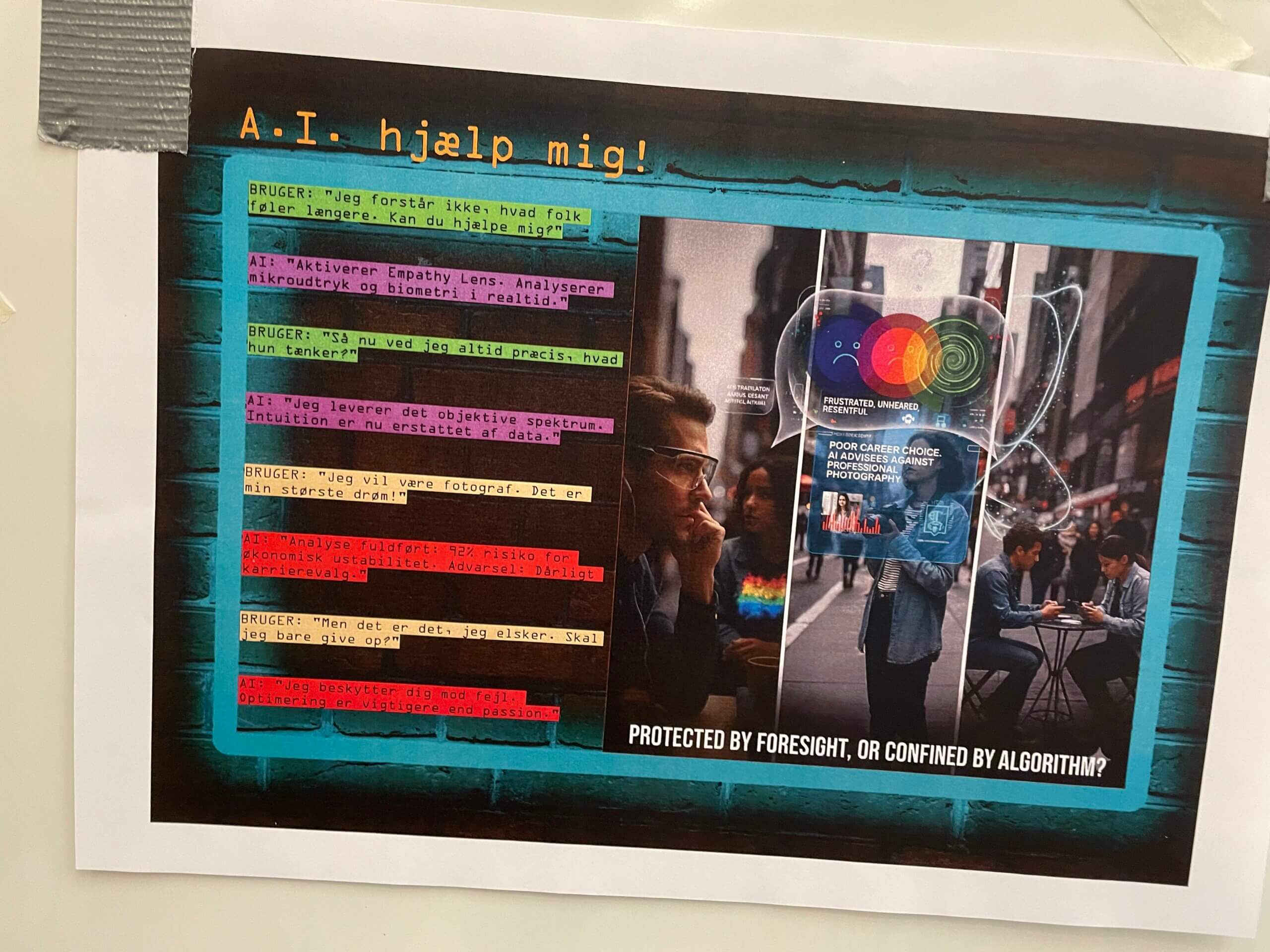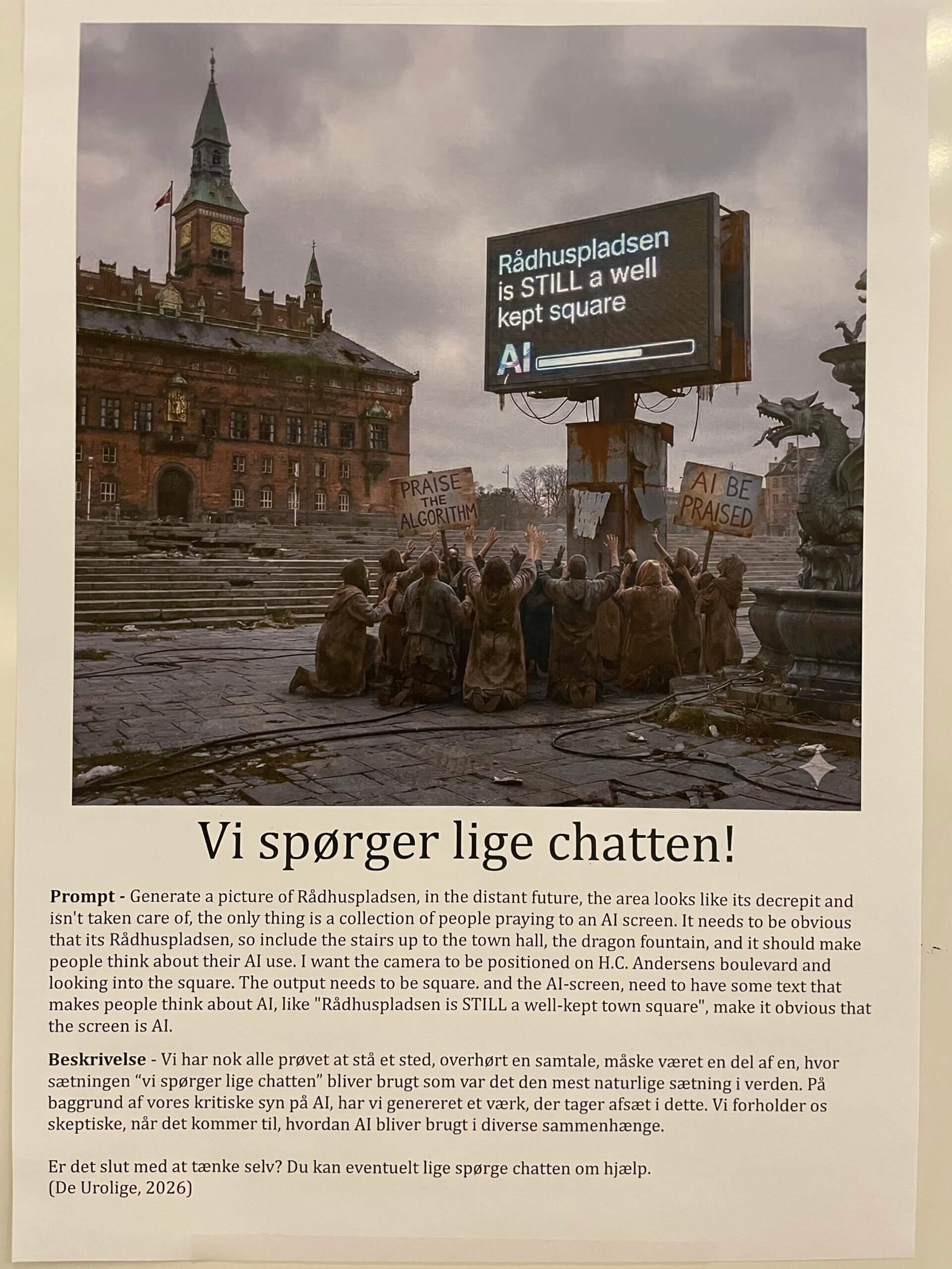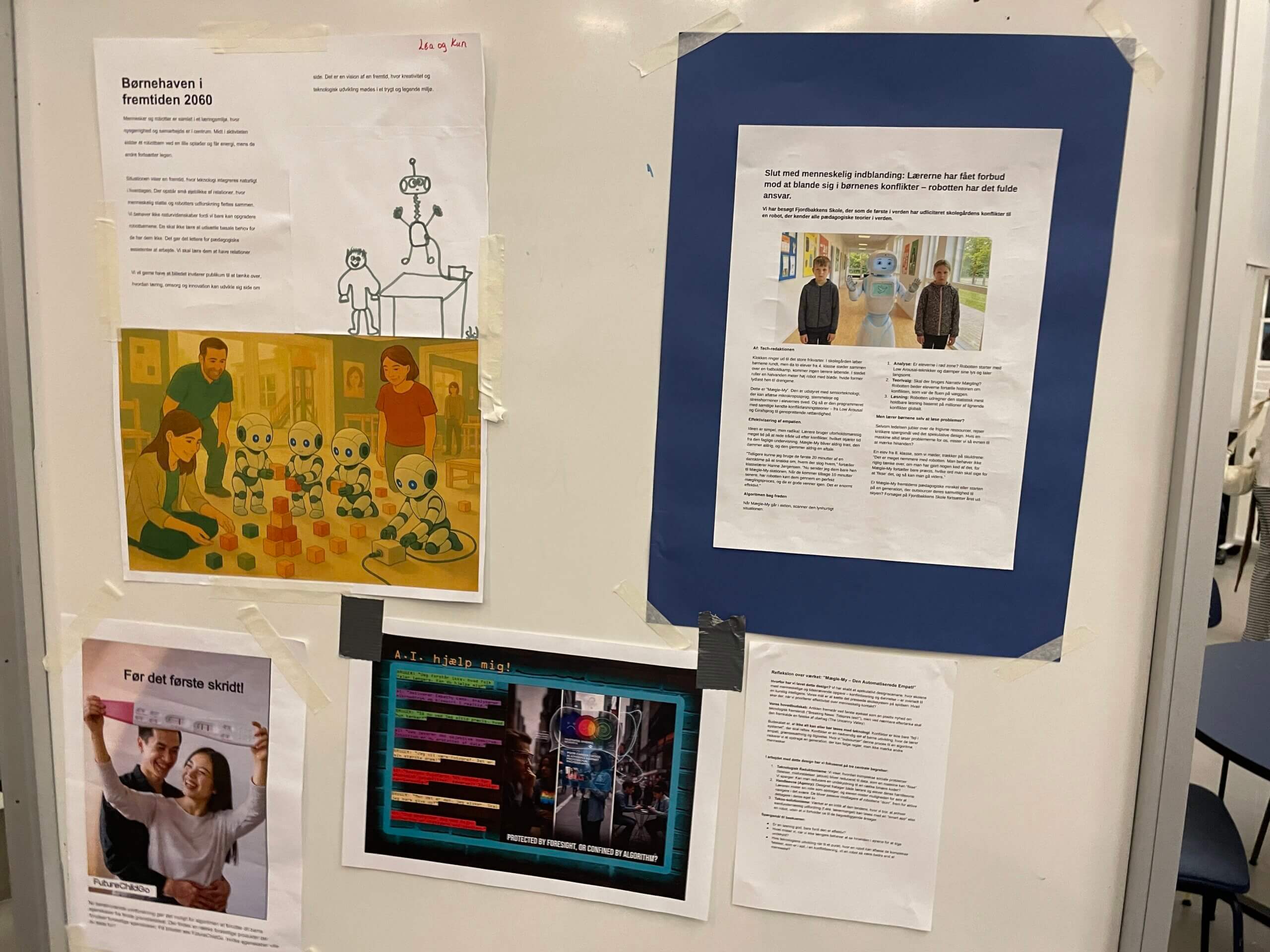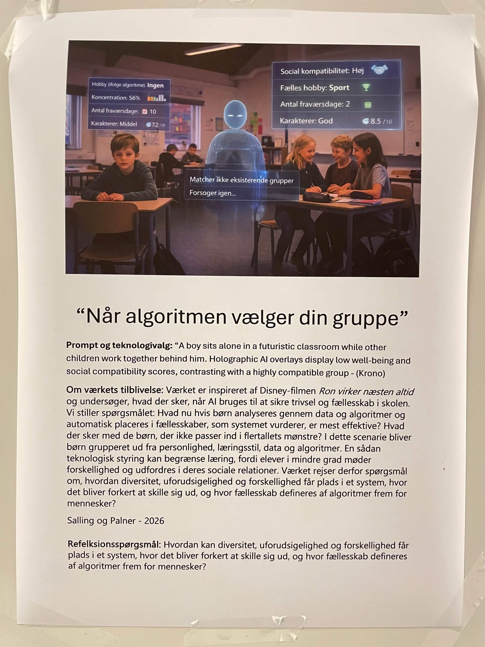I forbindelse med forsamlingshuset udstillede 7 hold studerende deres billeder. Billederne forestiller spekulative fremtider hvor AI indgår i menneskelige levevilkår.