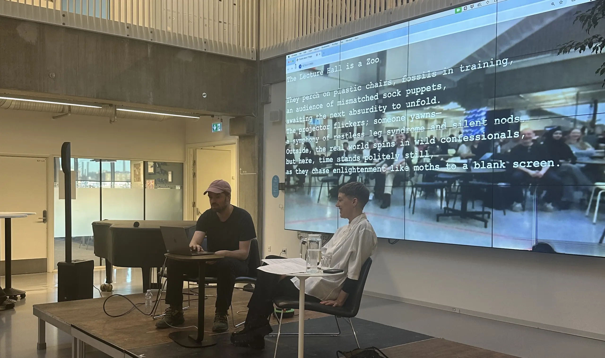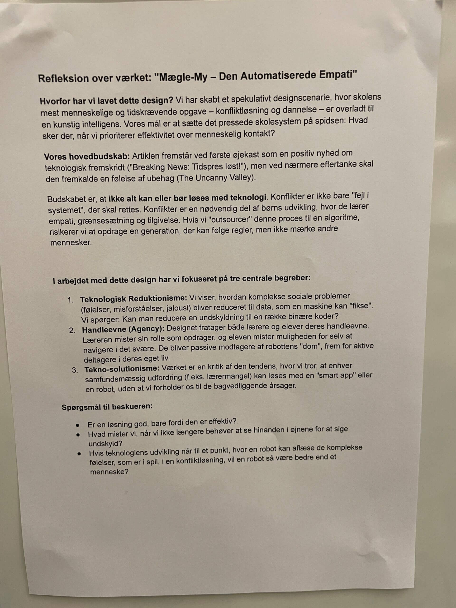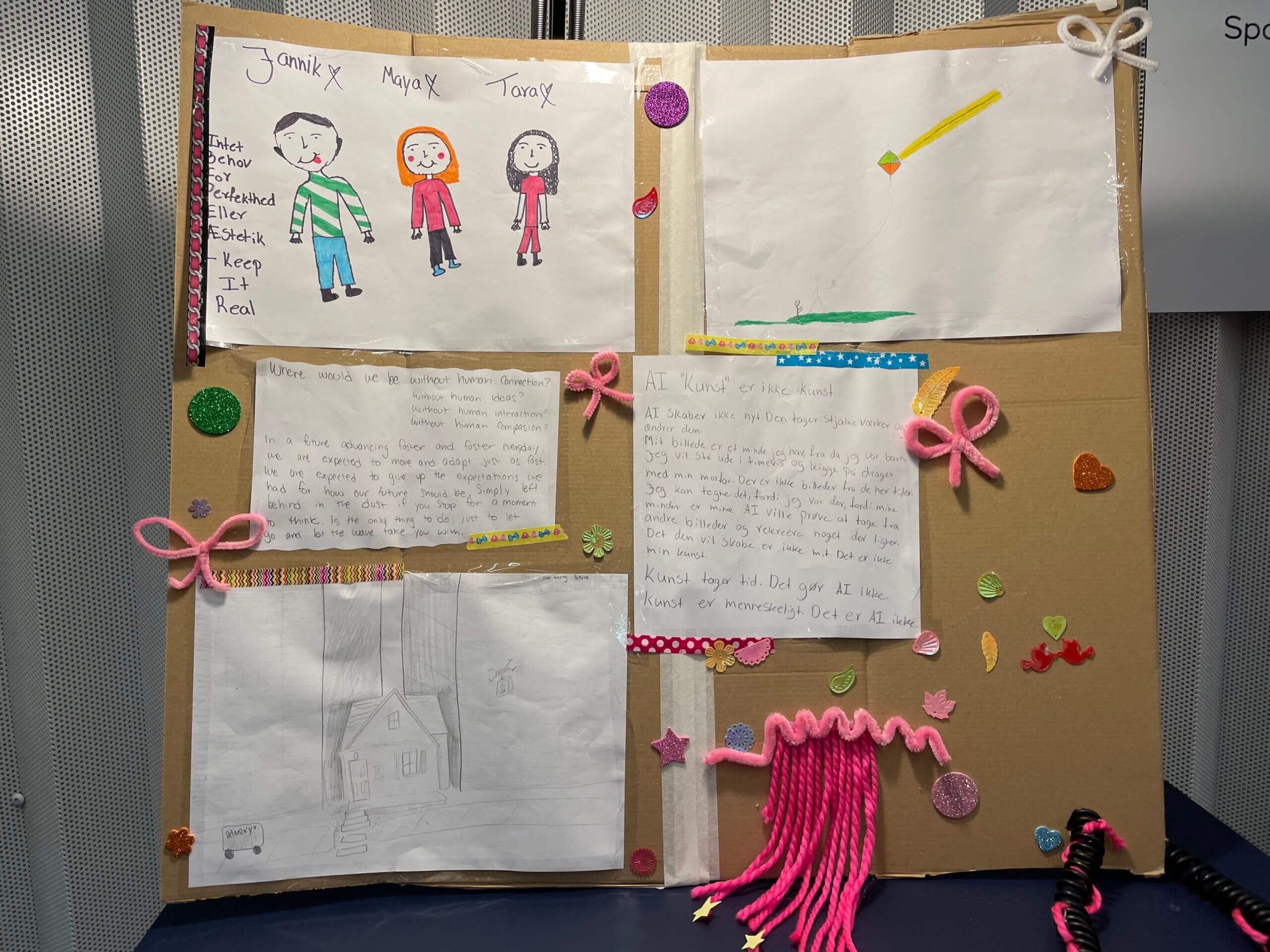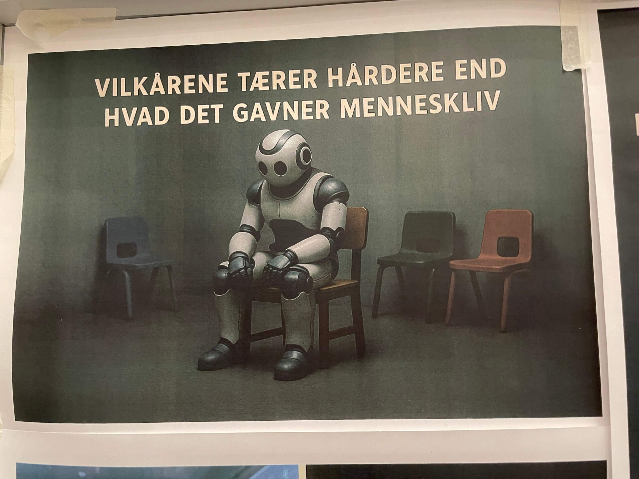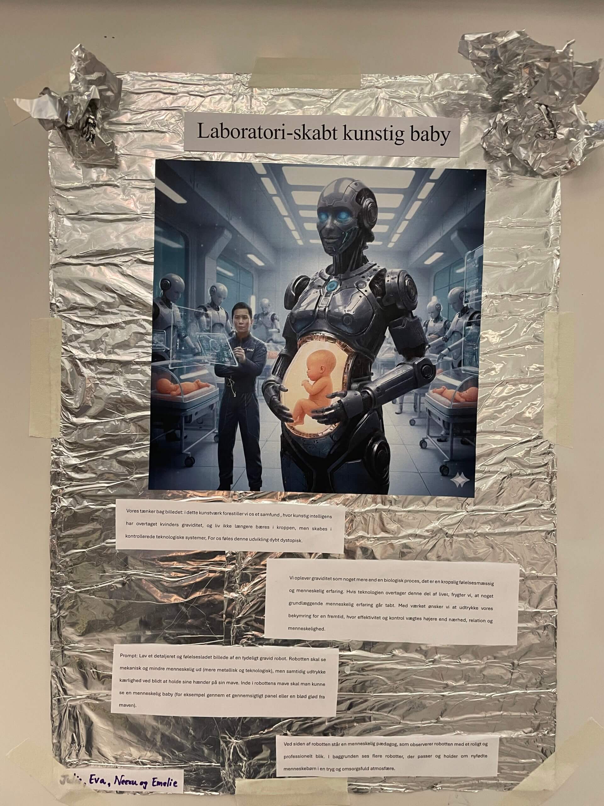I forbindelse med forsamlingshuset udstillede 7 hold studerende deres billeder. Billederne forestiller spekulative fremtider hvor AI indgår i menneskelige levevilkår.